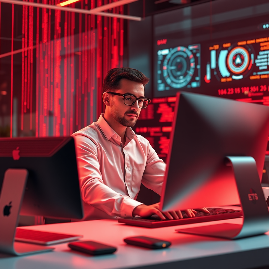 Prompt (Example): "futuristic office, a person surrounded by glowing data streams, representing AI automation and efficiency, sleek, modern design, professional, minimal, 4k, high detail, warm lighting --ar 16:9"